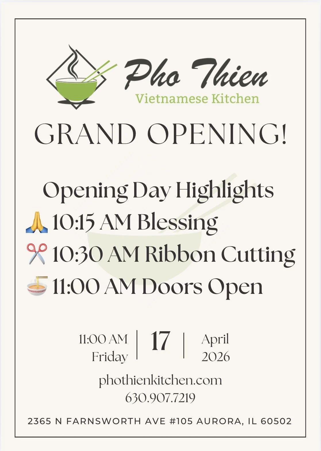 Grand Opening — Pho Thien Vietnamese Kitchen (Aurora)